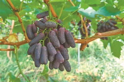 同样看好清水村未来的,还有乐至县乐康农业有限责任公司的老板李志聪。李志聪今年35岁,是乐至县劳动镇人,从小他就有一个农业梦。近年来,清水村积极带动村民发展特色果业、水产养殖业等,这让李志聪的梦想照进了现实。2020年,做了多年奶粉生意的李志聪回到家乡,在经过市场调研和对当地的温度、土质、降水等情况进行调查后,李志聪在清水村承包了140亩土地,引进了阳光玫瑰、夏黑、浪漫红颜、蓝宝石、巨峰5类品种的葡萄开展种植。去年是第一年挂果,葡萄的产量并不是很高,今年,他有信心可以迎来丰收。“我们前期准备充足,预计今年平均亩产3000斤,每斤批发价在5至10元”,李志聪年轻的笑容里透着对未来的无限期待。