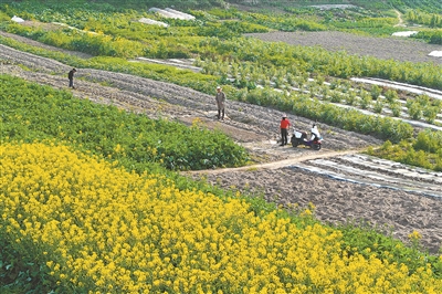 2月17日,在四川省泸州市纳溪区的乡间田野,村民们趁着晴好天气忙着下地盖膜、播种、移栽菜苗,田间地头一派繁忙景象。廖胜春 肖光荣 摄