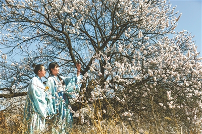 连日来,随着气温回升,山东省淄博市淄川区太河镇的万亩杏花竞相绽放,漫山遍野的花海美不胜收,吸引大批游客前来踏青赏花,享受春日美好时光。图为4月1日,游客在太河镇后沟村的杏林内赏花游玩、拍照留念。翟慎安 摄