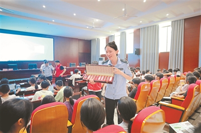 6月18日,江西省吉安市峡江县巴邱派出所走进辖区各中小学校开展“禁毒宣传进校园”活动,通过发放宣传资料、讲解禁毒知识、展示仿真毒品样品等形式,让学生认识到毒品的危害,引导学生珍爱生命、远离毒品。图为民警用仿真毒品样品向学生讲解毒品的识别等知识。王文军 宋靖辉 摄