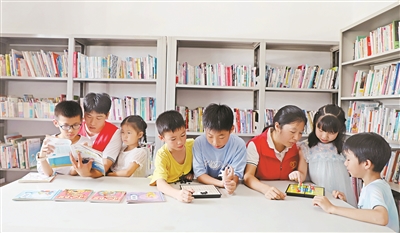 暑假期间,江西省新余市渝水区依托社区(村)新时代文明实践站,开设暑期公益托管班,邀请文艺志愿者、大学生志愿者等,为孩子们提供书画辅导、安全教育、兴趣培养、心理辅导等,让孩子们度过一个安全、快乐、充实的假期。图为8月8日,在下村镇江东村农家书屋里,大学生志愿者与留守儿童一起阅读、下棋。廖海金 摄