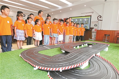 暑假期间,江苏省徐州市云龙区总工会融合多方资源,联合街道和社区开设11个暑期爱心托管班,让孩子们在家门口度过一个多彩、快乐的假期。图为8月7日,孩子们在翠屏山街道紫金东郡社区爱心托管班体验脑控赛车。 蒯创 摄
