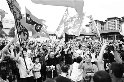 赛前预热活动中的成都队球迷。 本报记者 刘旭飞 摄
