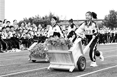 9月23日是秋分,我国将迎来第八个“中国农民丰收节”。9月22日,山东省枣庄市市中区文化路小学(齐福校区)举办了“趣味赛 庆丰收”活动,通过运送花生、搓玉米等趣味比赛,让学生体验劳动的快乐,感受丰收的喜悦。图为活动现场。孙中喆 董晓婕 摄