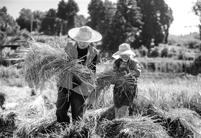 近日,贵州省黔西市稻谷收割已进入尾声,当地政府组织志愿者帮助村民,抓住天气晴好的有利时机,收割稻谷和晾晒,确保农户增收。图为10月9日,志愿者在黔西市绿化白族彝族乡小海子村,帮助村民抢收稻谷。周训超 摄