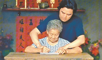彭强刚教母亲向素芳写字。曹丽红 摄