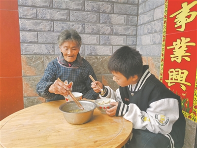 雷述芳与次孙一起吃饭。 钟擎波 摄