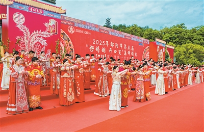 2025年邵阳市第三届“好婚姻 开口笑”集体婚礼现场。郑国华 摄