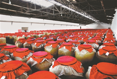 藏为酒之韵。原酒贮存环节,采用传统万吨陶坛陈酿库进行陈化老熟。陶坛壁特有的微孔结构,使酒体与空气保持缓慢而持续的交换,促进醛类、醇类等物质的氧化还原反应。在时光的雕琢下,酒体逐渐变得醇和绵柔,各种香味物质趋于协调平衡,最终形成“陈香优雅、醇厚绵甜”的典型风格。