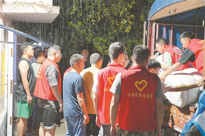 汉源县税务局“青年突击队”参加联系乡镇防汛减灾活动。