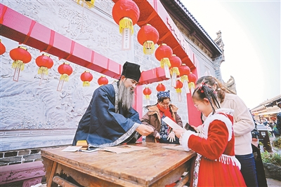四川省成都市洛带古镇NPC与游客互动。 洛带古镇景区管委会供图