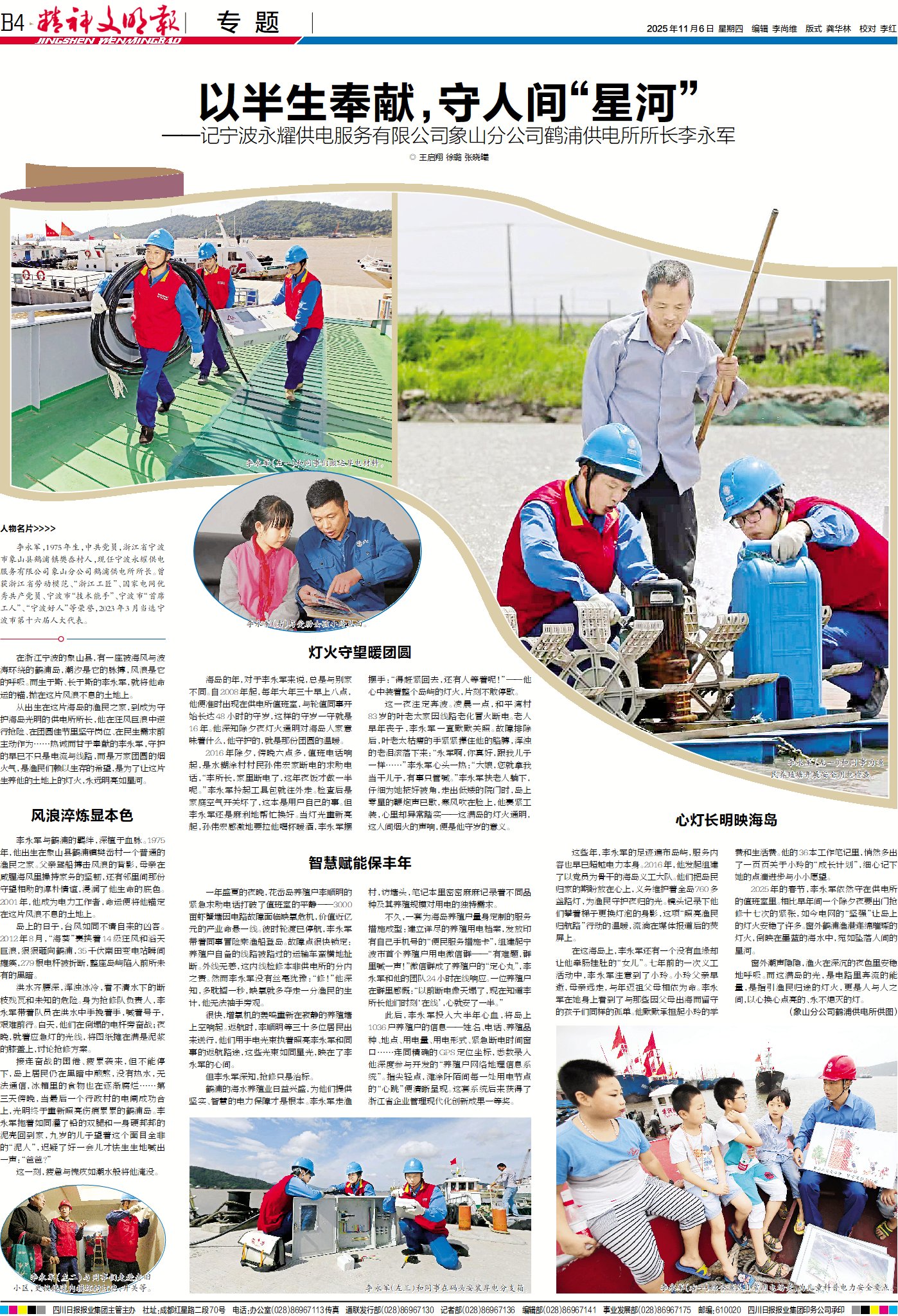 李永军与鹤浦的羁绊,深植于血脉。1975年,他出生在象山县鹤浦镇樊岙村一个普通的渔民之家。父亲驾船搏击风浪的背影,母亲在咸腥海风里操持家务的坚韧,还有邻里间那份守望相助的淳朴情谊,浸润了他生命的底色。2001年,他成为电力工作者,命运便将他锚定在这片风浪不息的土地上。