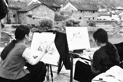 今年以来,位于湖南省永州市江永县兰溪瑶族乡勾蓝瑶寨的勾蓝丹青写生研学基地,与多家高校及画室达成合作意向,为学生提供吃、住、行便利,吸引全国各地学子纷至沓来,用画笔记录古村之美。图为11月6日,广东白云学院的大学生在勾蓝瑶寨写生。田如瑞 摄