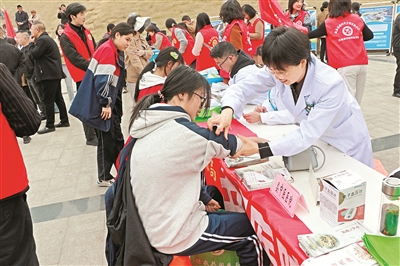 文明实践集中示范活动现场,岚皋县中医医院医生在开展义诊服务。陈博 摄
