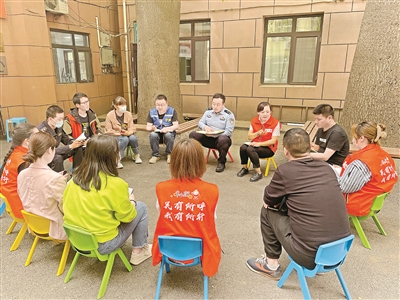 辛家庙街道东元路物流社区“板凳会”宣讲现场。
