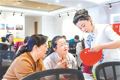 青绣技艺创新领衔人单永武(右一)带领剪纸非遗项目走进乡村,开展传承实践活动。