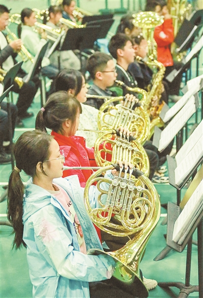 秋季开学以来,四川省华蓥市双河小学“娃娃管乐团”的学生,充分利用课余时间练习管乐器,备战11月下旬在成都举办的全省中小学生第十一届“意林杯”管乐展示活动。图为11月16日,学生在练习圆号。邱海鹰 刘南贤 摄