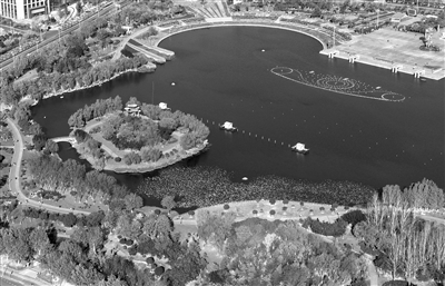 初冬时节,安徽省亳州市高新区市政公园层林浸染,色彩斑斓,静谧的湖水与城市新貌相互映衬,构成一幅美丽的冬日画卷。图为11月18日,在市政公园拍摄的冬日美景。刘勤利 摄