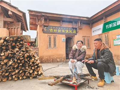 吉好有果和吉好也求在新居前烤火。罗园 摄