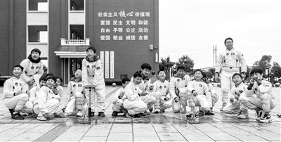近年来,湖南省道县道州玉潭(东阳)学校积极创新课后服务模式,为学生提供无人机、“水火箭”等特色课后服务活动,培养学生对科学技术的兴趣和爱好,体验科技带来的快乐。图为11月18日,学生们在进行“水火箭”实验展示。蒋克青 摄