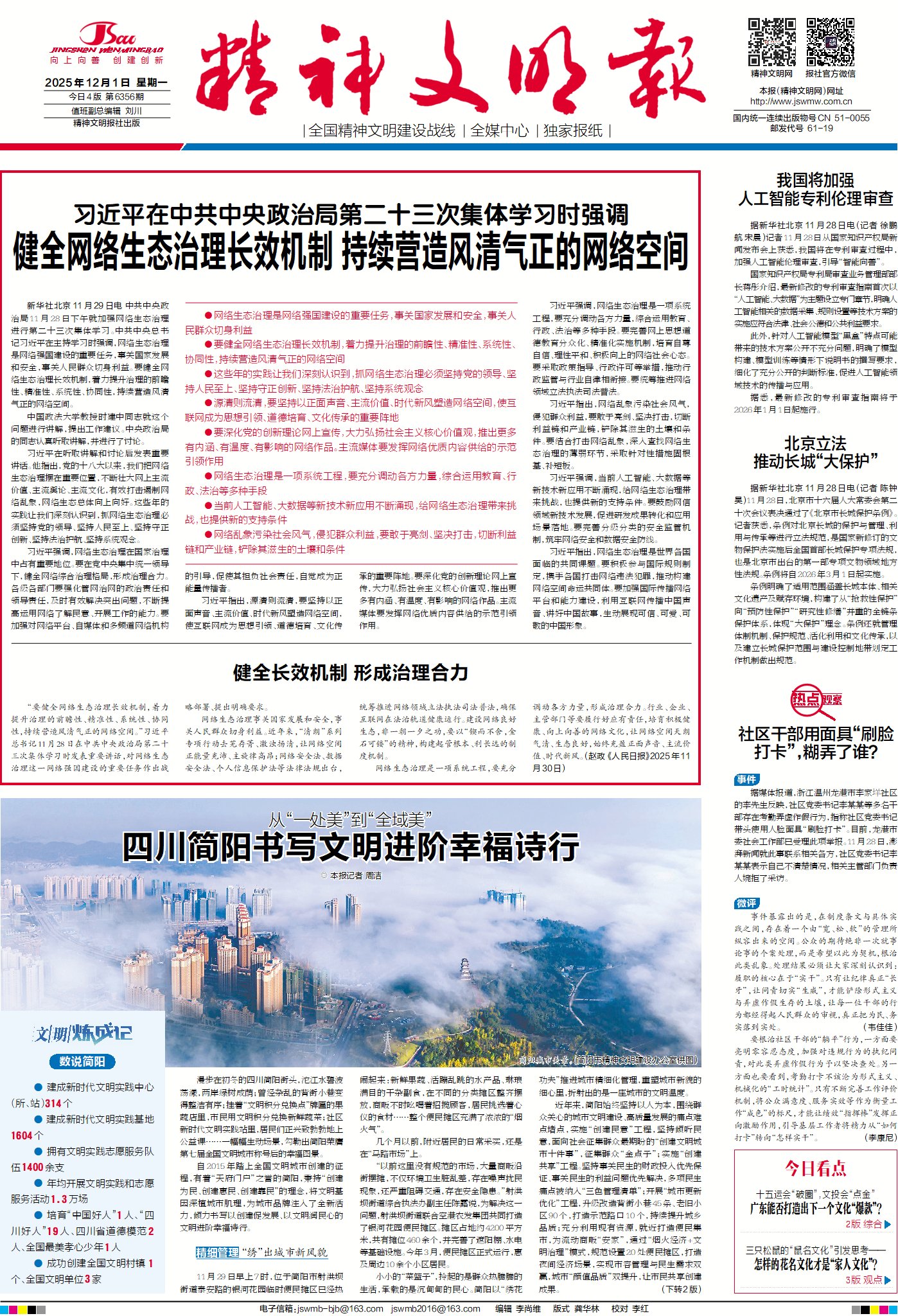 ●要健全网络生态治理长效机制,着力提升治理的前瞻性、精准性、系统性、协同性,持续营造风清气正的网络空间