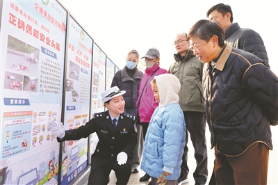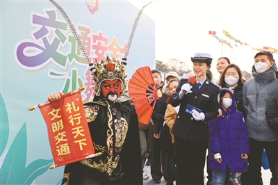 12月2日是第十四个“全国交通安全日”,主题为“文明交通 礼行天下”。山东省枣庄市在光明广场开展了交通安全主题活动,通过多形式宣传,增强人们的交通安全意识,提高自我保护能力。上图为枣庄市公安局交通管理支队民警向人们宣传交通安全知识。右图为一名辅警通过“变脸”的表演方式宣传交通安全知识。孙中喆 摄