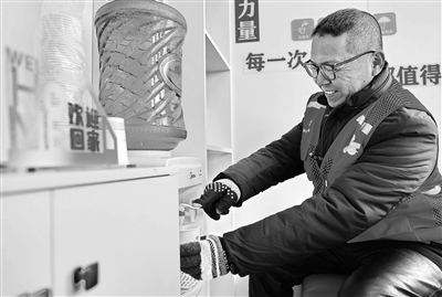12月5日,河北省秦皇岛市首家金融系统2.0版暖“新”驿站揭牌启用。该驿站配齐休息座椅、多接口快充设备、微波炉、应急医药箱、惠民阅读角等基础便民设施,为新就业群体提供便捷舒适的临时休憩空间。图为网约配送员在暖“新”驿站内接热水。曹建雄 摄