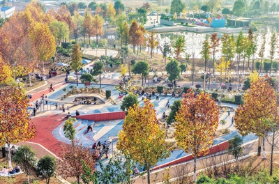 近年来,湖南省永州市道县提质改造城市绿地,因地制宜建设“口袋公园”,打造15分钟生态休闲圈,生态环境明显改善。图为12月6日,道县绍基公园冬景如画,居民们在此休闲游玩,乐享冬日暖阳。蒋克青 摄
