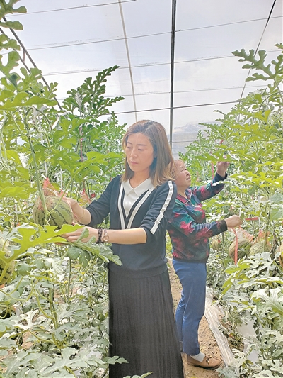 “陕西好人”郝艳(左)在果蔬大棚内劳作。