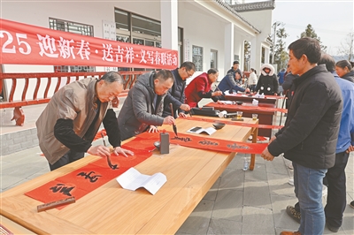 文艺志愿者为村民义写春联。