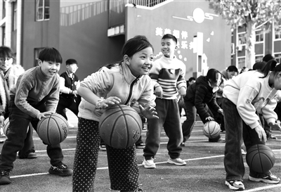近年来,河南省商丘市夏邑县育才学校开展学生体育素养提升行动,排练课间篮球操,推动学生全员参与篮球运动,让学生在快乐的运动中增强体质、健康成长。图为12月8日,小学生在练习课间篮球操。