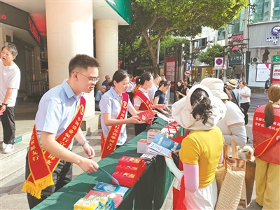 农行翠屏支行为民众普及反诈、人民币防伪等金融知识。