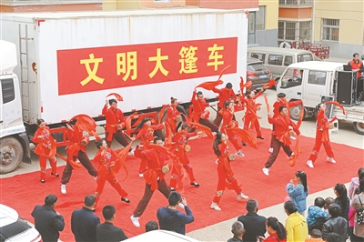 “文明大篷车”搭载的是服务,更是文明乡风:“赶”农村的集、“蹭”百姓的喜,在最热闹的场合,播撒文明的种子。