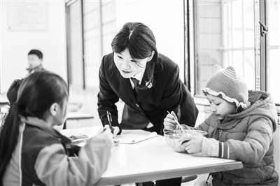 12月24日,贵州省黔西市人民检察院的检察干警深入黔西市绿化白族彝族乡培育小学食堂,查看食品采购、储存、加工、留样、配送等环节,并特别关注学生营养餐的食材来源、营养搭配、加工流程等,确保每一份营养餐都能为学生提供均衡的营养支持。图为当天,检察干警在黔西市绿化白族彝族乡培育小学了解学生吃营养餐的情况。周训超 摄