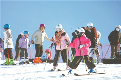 12月24日至28日,内蒙古自治区呼伦贝尔市为当地义务教育阶段1至8年级学生放首个“雪假”,让广大中小学生在“雪假”期间感受冰雪魅力、传承冰雪文化、增强身体素质。同时,呼伦贝尔市在“雪假”期间推出了一系列特色冰雪活动,以“冰雪+教育”融合模式,为当地中小学生提供兼具趣味性与知识性的假期体验。图为12月24日,学生们在扎兰屯金龙山滑雪场体验滑雪。韩颖群 摄