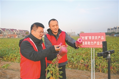 “我们磨头镇丁冒村金旺农场的萝卜,香脆可口,一口咬下去根本停不下来。”1月6日上午,江苏如皋磨头镇丁冒村打造的读蔬馆直播基地里,如皋市新时代文明实践队的“村播”手捧沾着泥土的鲜萝卜,通过网络直播向观众热情推介。