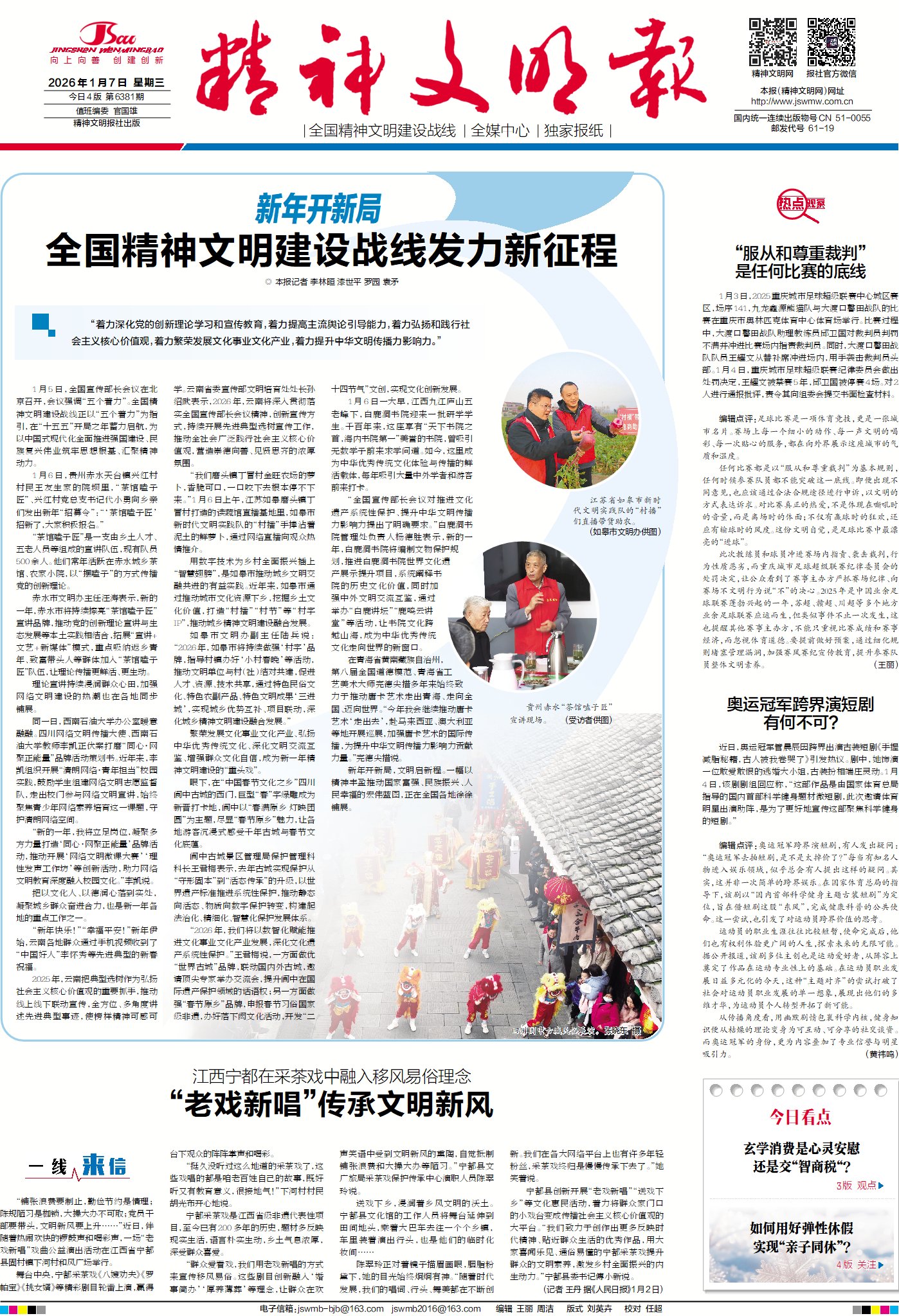 新年开新局,文明启新程。一幅以精神丰盈推动国家富强、民族振兴、人民幸福的宏伟蓝图,正在全国各地徐徐铺展。