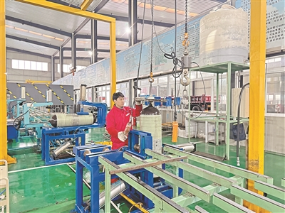 保城公司工作人员正在对CNG气瓶进行检验。(保城公司供图)