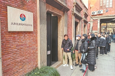 韩国游客在上海市马当路上的大韩民国临时政府旧址排队等候参观。 汤彦俊 摄