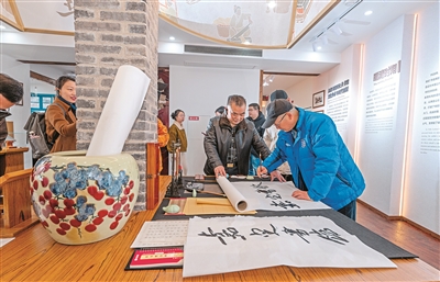 书法老师在嘉定书馆现场书写。(乐广传媒供图)
