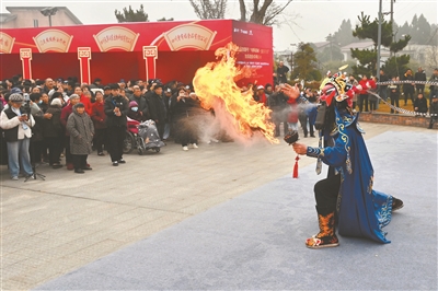 近年来,四川省内江市东兴区充分发挥文化赋能经济社会发展的重要作用,在人气聚集的景区、商圈、广场等地常态开展“文化惠民促消费”活动,不断拓展“文化+”消费场景,带动城乡文化繁荣,提振消费活力。图为1月16日,在东兴区范长江文化旅游园区,川剧演员在迎春消费季活动中表演川剧绝活“吐火”,吸引了不少游客驻足围观。兰自涛 摄