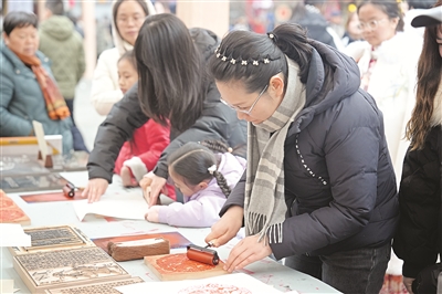 1月21日,在阆中古城历史文化街区内,锦绣四川非遗赶大集与文化遗产保护社会实践活动同步开展,通过沉浸式体验让市民和游客感受蜀锦、蜀绣、成都漆艺、青神竹编、绵竹年画、九寨沟祥巴版画、仪陇剪纸、阆中刺绣等非遗的独特魅力。