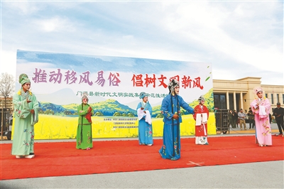 门源县新时代文明实践集中示范活动中,眉户戏《乡村文明促发展》展演。