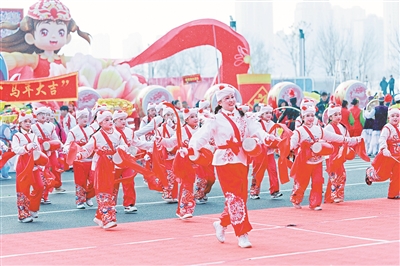 2月26日,第二届“打起手鼓舞起龙”新疆乌鲁木齐社火巡游展演活动在乌鲁木齐文化中心精彩上演。本次巡游展演创新采用“社火队伍+主题花车”形式,9辆花车、18支队伍、2480人同台展演,为市民和游客奉上一场精彩的民俗文化盛宴。孙振嵩 摄