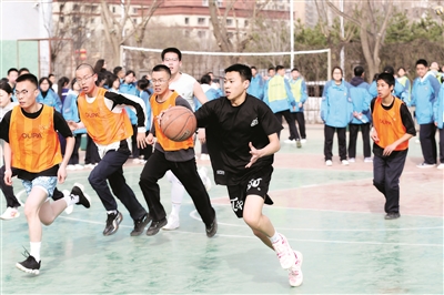 今年新学期开学以来,甘肃省平凉市第五中学坚持“健康第一”教育理念,积极探索构建“体育课+大课间+课外锻炼”机制,通过开展校园“班超”阳光体育运动推行学生体质强健行动,确保学生每天综合体育活动时间不低于2小时,让学生在体育竞技中感受运动的欢乐。图为3月23日,学生参加篮球比赛。