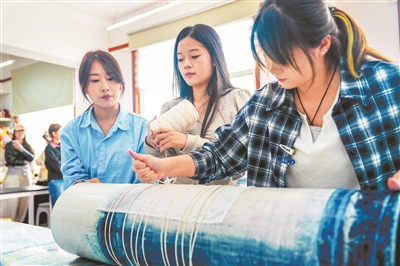 近年来,山东轻工非遗学院扎根淄博沃土,深度挖掘齐文化、丝绸文化等地域特色文化内涵,构建起集教学、研究、保护、展示、传播于一体的全链条非遗育人体系,着力破解非遗传承“有手艺没市场”的发展痛点,为非遗活态传承注入职教动能。图为4月7日,在山东轻工非遗学院非遗刺绣课堂上,学生飞针走线,在一丝一缕间锤炼技艺。翟慎安 摄