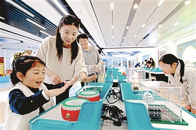 4月3日,孩子们在位于江苏省徐州市云龙区的一家科学探索馆,体验科普设备。蒯创 摄