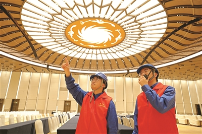 2025年4月27日,国网天府新区供电公司工作人员在国会中心开展用电检查。