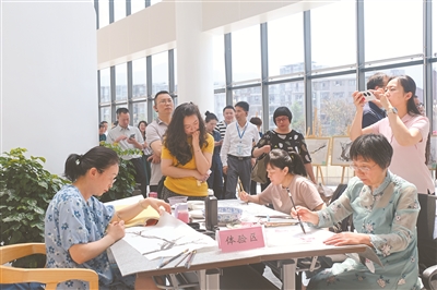 川东北渝北新时代文明实践综合体内,群众在华蓥市美术馆体验区画画。漆世平 摄