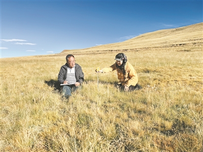 第五届玉树好人敬业奉献模范布久·索南更青(左)。